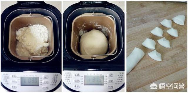 4.将饺子皮料全部投进面包机。