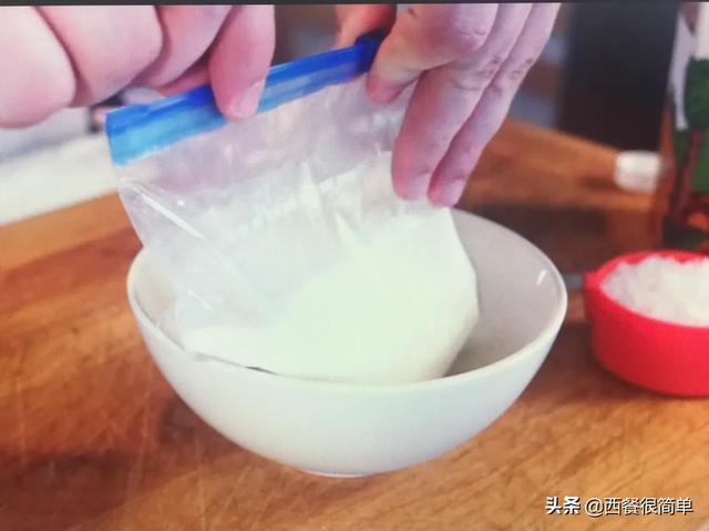 将调好的奶倒入小袋子,封好,怕漏就双层袋子。