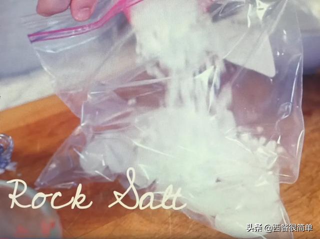 大袋子加入冰块,大粒盐。