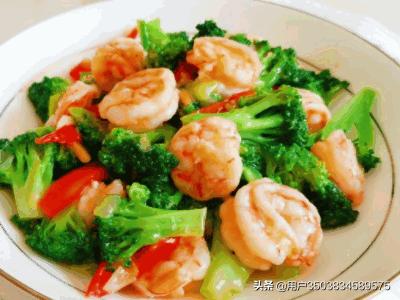 食材:海虾、西兰花、大葱、蒜、淀粉、精盐、耗油、鸡精。