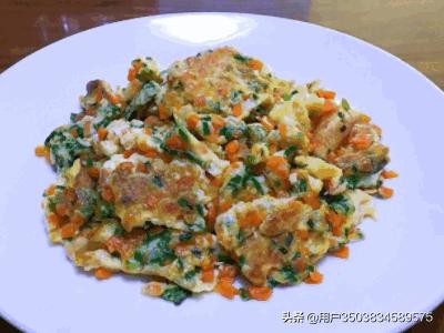 做法:将鸡蛋打入碗中,放入胡萝卜碎和葱花,加盐打散;锅内热油倒入蛋液,蛋液凝固后炒散即可出锅。