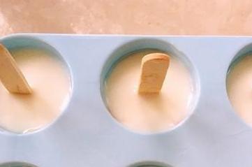 7倒入猕猴桃果泥,插上雪糕棒,冷冻三小时以上。