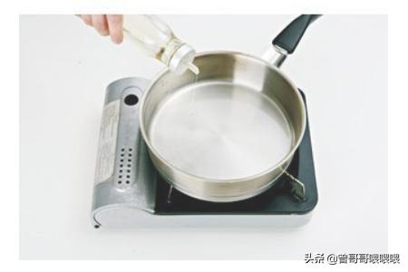 5、锅放在火上,烧热后倒入茶籽油,油尽量多一些,猪肝如果油少很容易粘锅。