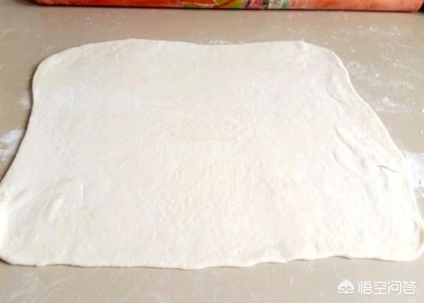4、面团醒好直接擀成薄面片。 (擀成厚度和饺子皮一样的面片)