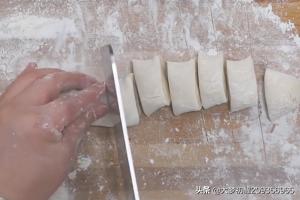 6、扯掉饺子皮旁边多余的边角料。 (剩下的边角料揉一揉,继续擀成面片,压出饺子皮,重复把面片做完。)