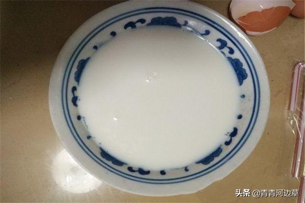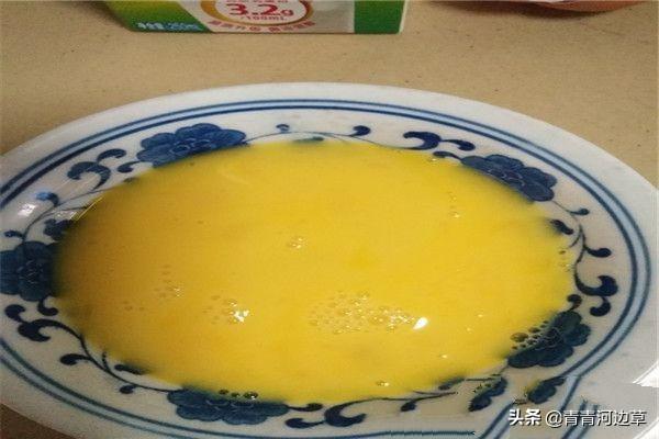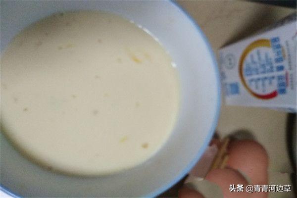 然后我们要把一碗牛奶倒入打散后的蛋液中,这时候也要不断地搅拌,使其充分融合,牛奶的分量可以按照个人的口味来放。