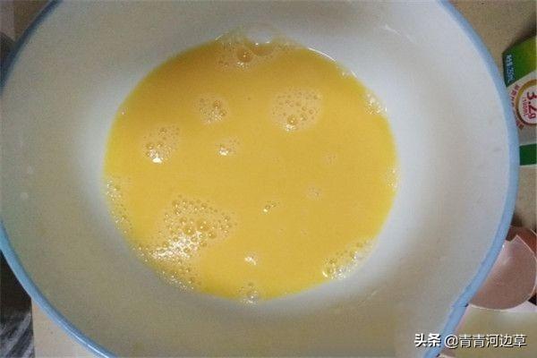 首先,我们要准备好我们所需要的食材,先将两个鸡蛋打散在碗中,我们可以用筷子不断地搅拌,将其打散均匀。当出现图片中的样子时,就说明已经打散成功了。