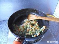 10、把黄瓜粒和火腿粒也倒进去一起翻炒