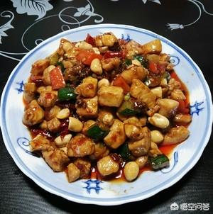 7.锅底油烧稍热,改小火入花椒和小红辣椒段爆香,入切碎的郫县豆瓣酱炒出红油,入黄瓜丁和胡萝卜丁,改大火迅速炒软,入煸炒过的鸡肉丁翻炒片刻,沿着锅边淋入碗汁大火迅速颠炒均匀,最后入炒熟花生米,迅速颠匀出锅。