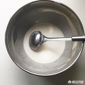 第二天将静置好的洗面水,把上面的清水小心倒掉,一定要小心,别碰到底下沉淀的面粉。调面糊这部是关键,倒掉清水后的面糊中加适量清水,用勺子搅拌均匀,最后调出的面糊可挂浆即可。一定不要稠了(稠了容易裂,成品口感会不Q,不好吃)。(重点在说一遍,沉淀好的浆水倒掉后一定要加适量清水)