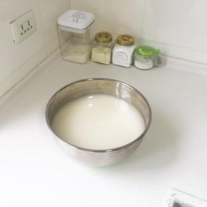 2、加入矿泉水,不需要淹没面团,水位到面团的一半就可以。