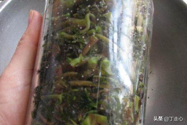 2,用手揉搓到香椿柔软的样子,装到玻璃瓶中。
