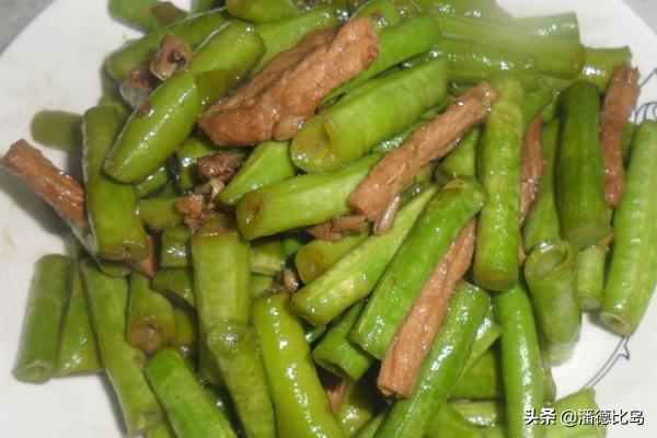 6、放适量细盐,翻炒均匀。豆角不太容易烂,可加少量水。