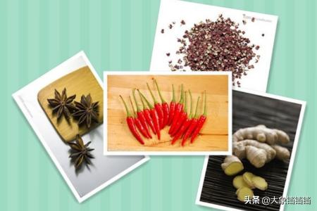 2、将事先准备好的调料(小辣椒、葱段、姜片、料酒、花椒、大料、酱油等)放入锅中,注意此时不要放盐;