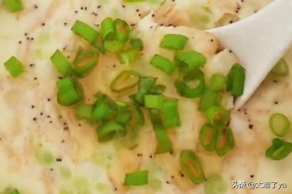 5、上锅蒸12分钟,放点小葱花、一点香油。蒸鸡蛋糕做好啦。