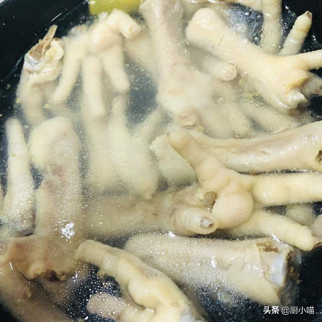3、煮好的鸡爪捞出快速放入冰水,过冰水有利于鸡爪口感劲道