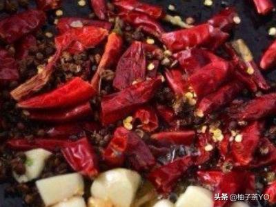 2、准备工作做好后,点火做锅,倒入食用油。抓住锅把,均匀摇动,让油沾满整个锅。待油温升起,放入切好的干红辣椒、姜、蒜等,中火翻炒,爆香。