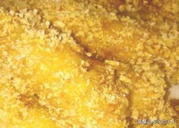 5、炸的时候不要翻..面包糠容易掉下来..炸成这样就行了。