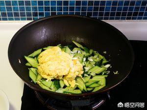 5、放入鹅蛋翻炒至8成熟盛出备用,如下图。