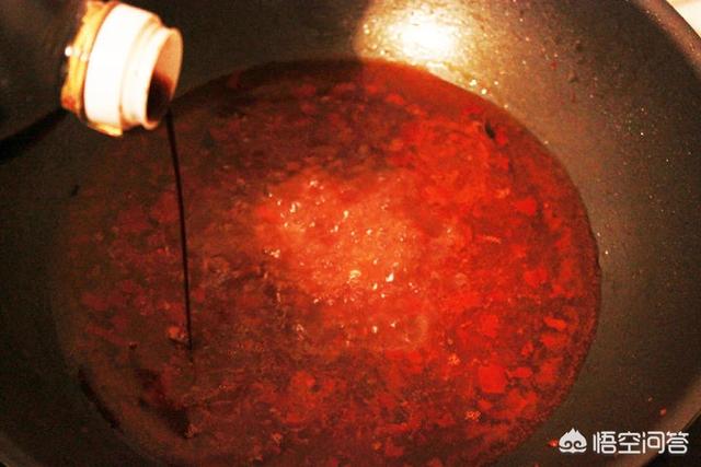 然后锅里放油,炒豆瓣酱。
