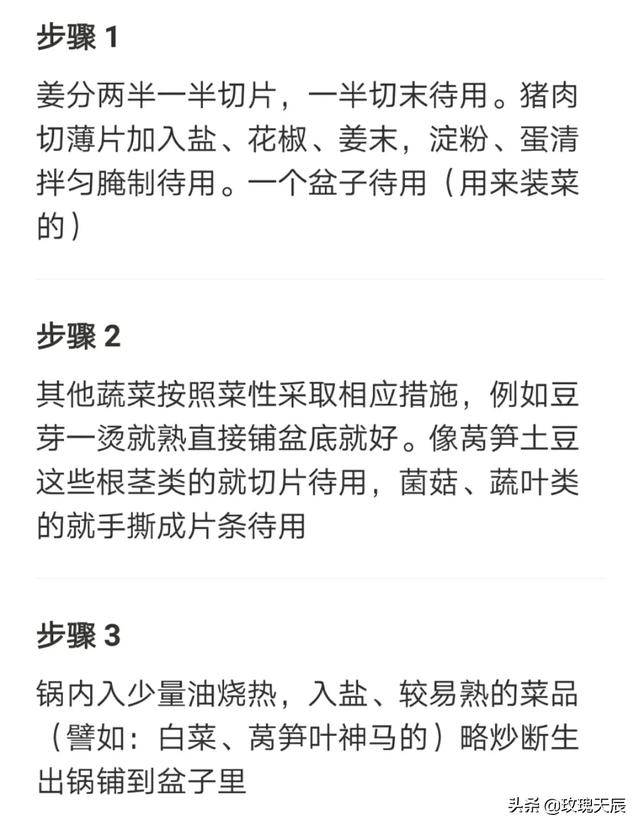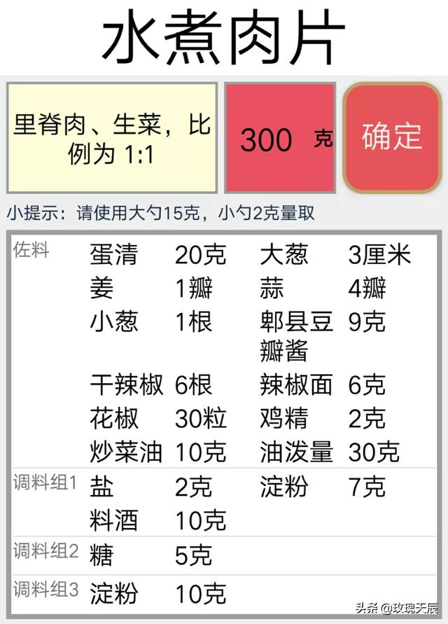 用料 :里脊250克,青菜适量颗,豆腐皮千张1张,葱蒜香菜适量,水煮肉片调味料1包