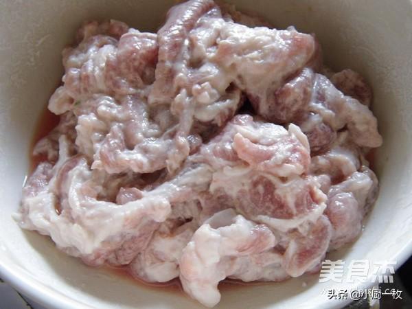 1??里脊肉切薄片,加淀粉生抽腌制片刻。