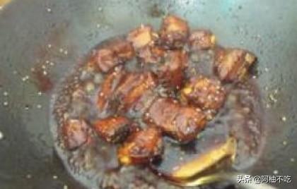 6.倒入生抽、料酒、老抽和米醋翻炒至排骨上色