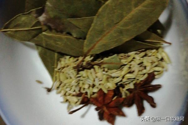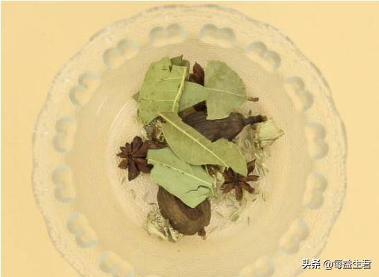 配方:八角6克、肉桂3克、香叶3克、草果6克、小茴香3克、丁香1克、白豆蔻2克,砂仁4克,当归0.5克、甘草1克、陈皮2克。