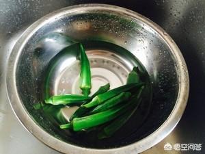 1:清洗秋葵,对于我来说秋葵有点难清洗,总爱扎手,所以我会先用盐浸泡五分钟,然后捞出来继续清洗几次!