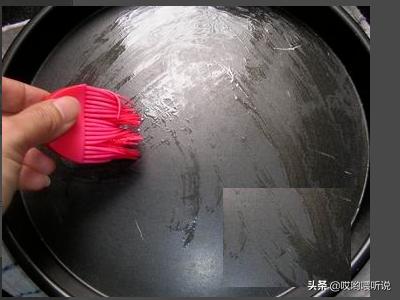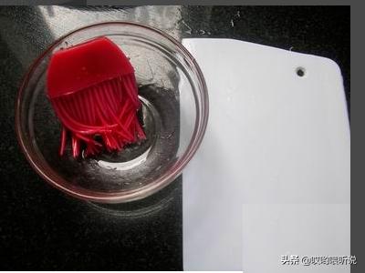 5、准备生油扫子刮板,准备一盘子用来蒸粉的,只能用批萨盘,不粘的,好好用。