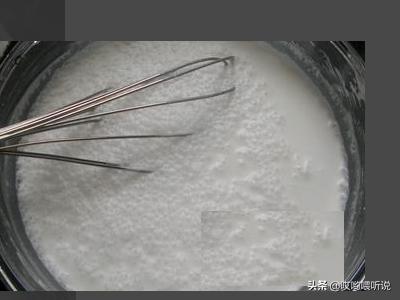 2、150克的粘米粉倒在盆,入加清水450克均匀搅拌,然后放置一边自然泡三到四小时,我只泡了两小时,让粉与水更均匀。