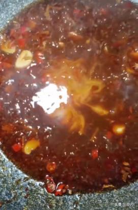 3、在锅里面烧油放入葱姜蒜和红辣椒段,花椒和豆瓣酱,火锅底料。