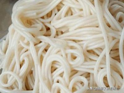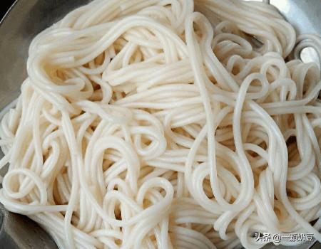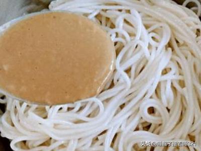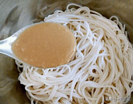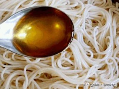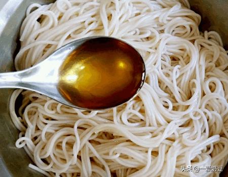 8、在面条上加1勺麻油(橄榄油)拌开,晾凉。