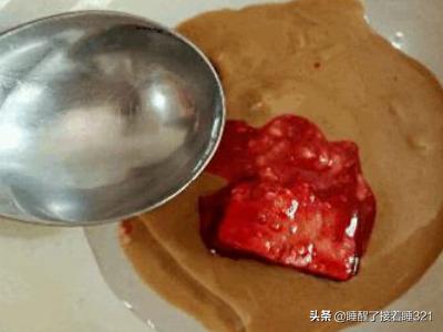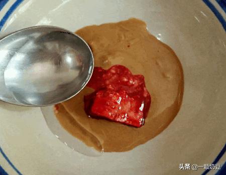 3、调汁:2勺麻酱,1块腐乳捣碎,加适量温水调匀。