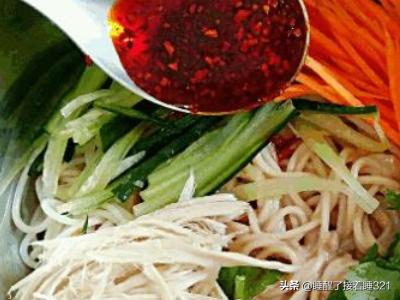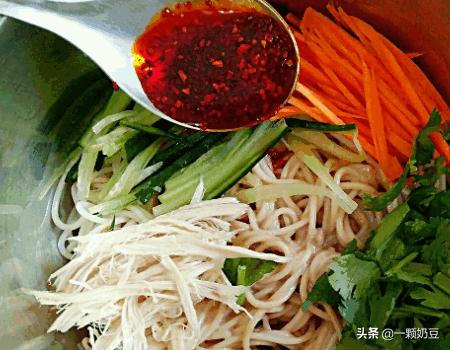 10、拌入菜码,根据个人口味加适量的油泼辣子拌匀即可。