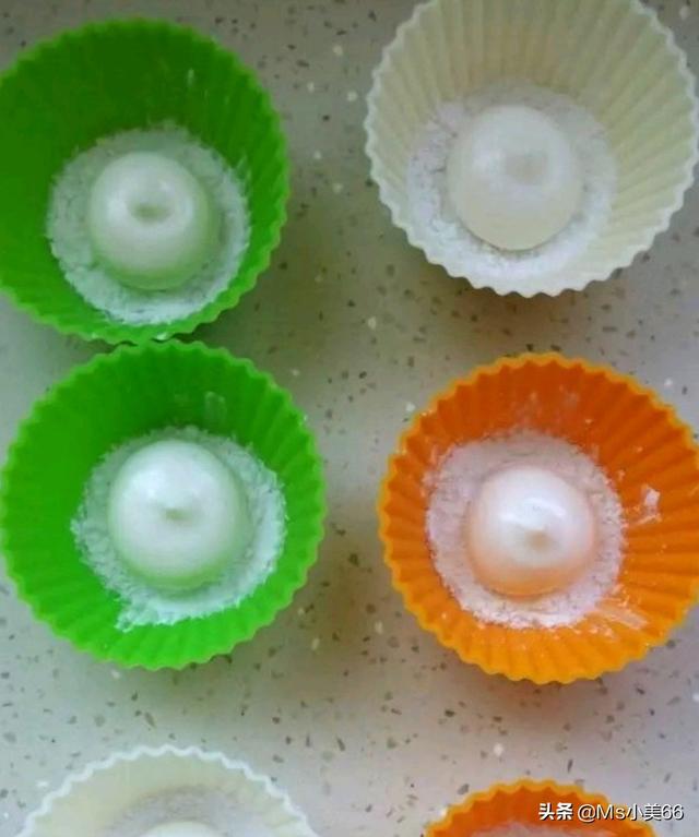 ⑦待两面都凝固好以后,拿出来轻轻地把表面的玉米粉去掉,就可以放到