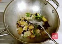 4、放入土豆片煸炒稍加点汤炖片刻,大约5分钟左右,收汤再放入老黄瓜片,加适量盐煸炒。炒至土豆片熟、老黄瓜片断生,即可出锅。