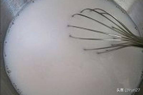 5、把椰浆和椰树椰汁还有糖按比例倒进干净的打蛋盆中搅拌一会,至糖溶化。