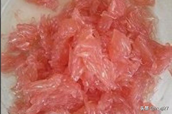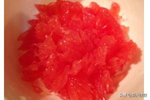 3、西柚最好买进口红肉的,颜色好看而且香味浓郁;将肉剥出后轻轻揉散,备用。